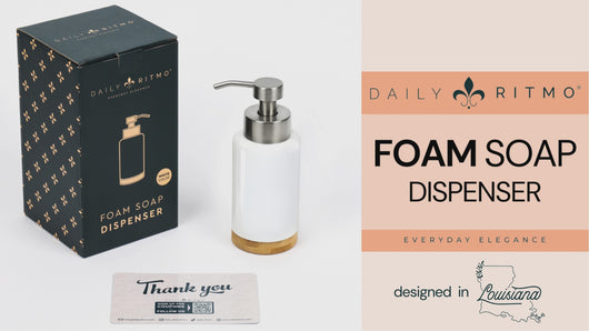 DAILY RITMO® Foaming Soap Dispenser | White Ceramic-Like Resin with Bamboo Base