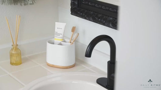 - ✅ Aesthetic Appeal: Our toothbrush holder boasts a sleek, modern design with a bamboo base and durable resin body, making it a stylish addition to any bathroom decor.